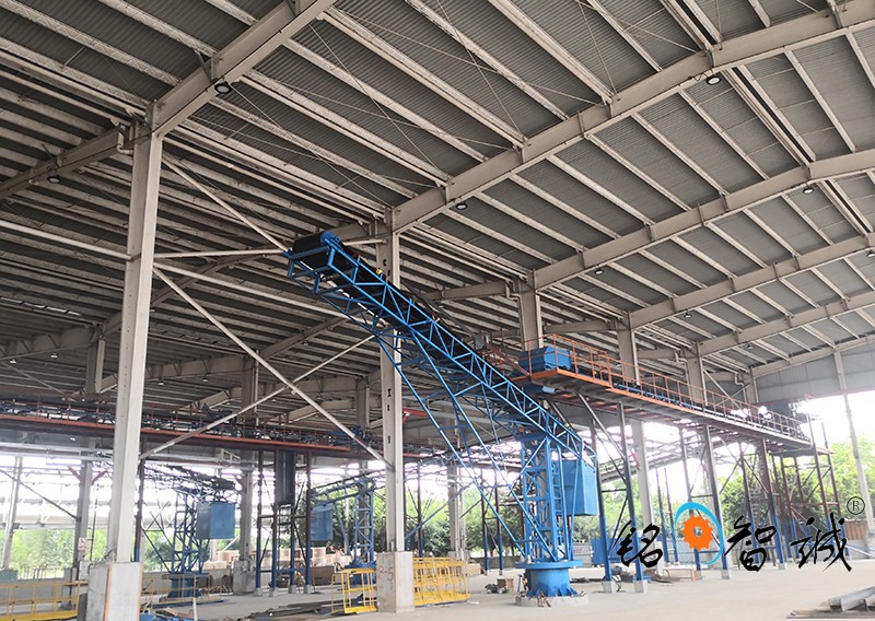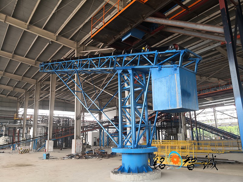 旋轉式皮(pí)帶輸送機,為(wéi)散碎物料倉貯輸送設(shè)備,是在安裝有行走輪(lún)的支架上部的底盤上安裝一轉盤,轉盤可相對底盤作旋轉運動,皮帶輸送機的進料端座在(zài)轉盤頂(dǐng)部的托盤上,出料端為懸臂式,配重箱在(zài)托盤上用以上與懸臂配重,倉貯時,物料通過料鬥由輸送(sòng)帶送至遠端(duān),推動懸臂即可改變堆積(jī)位置,在(zài)庫房(fáng)內實現多(duō)點堆積而勿(wù)需停機和移(yí)動機體,連續作業省時省力,操作方便,尤(yóu)其適用於糧食的(de)倉貯輸送。